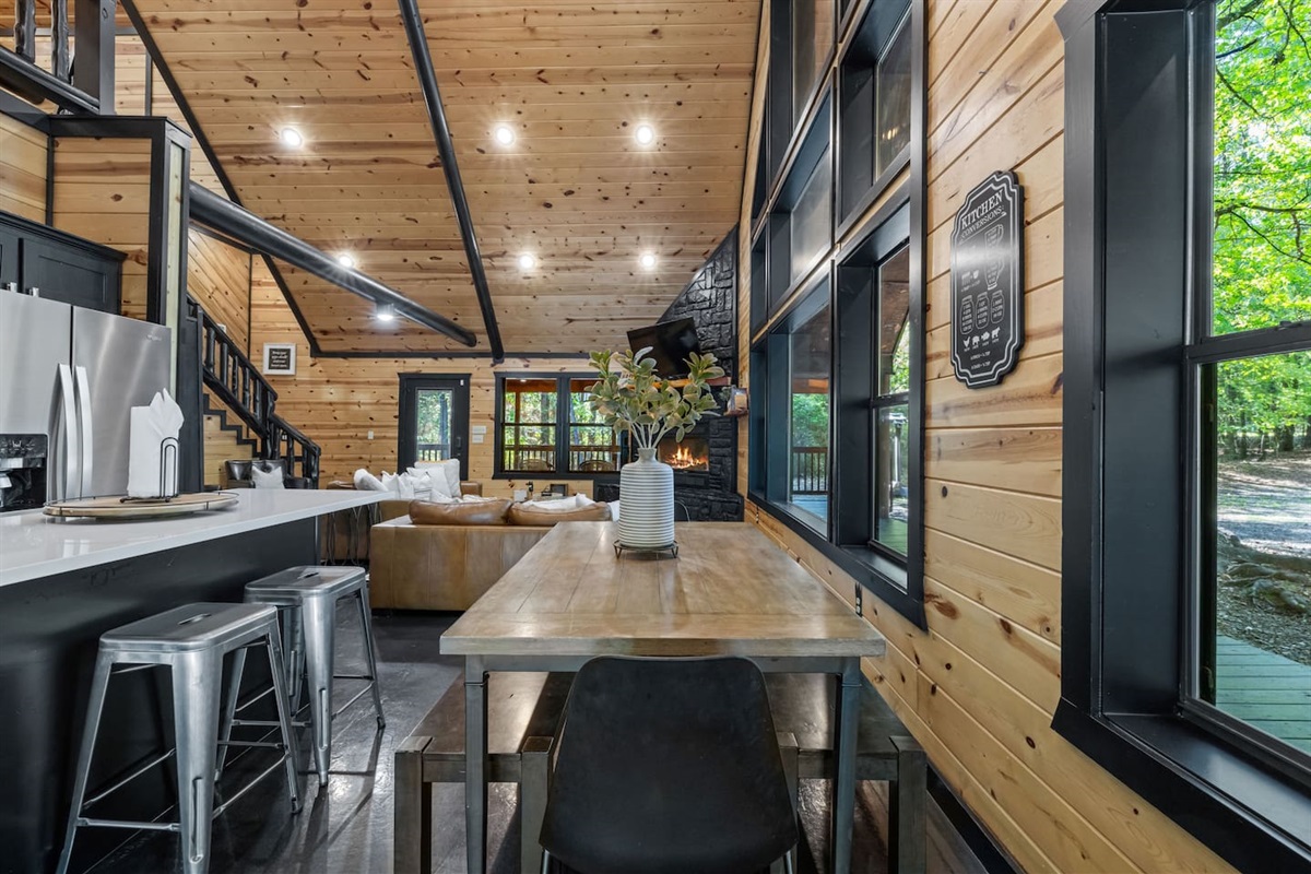 Inside, you’ll find comfortable accommodations for up to 8 guests, with thoughtful touches to make your stay effortless. Spend your mornings enjoying coffee on the porch while soaking in the fresh mountain air, and your evenings unwinding in the private hot tub under a canopy of stars.