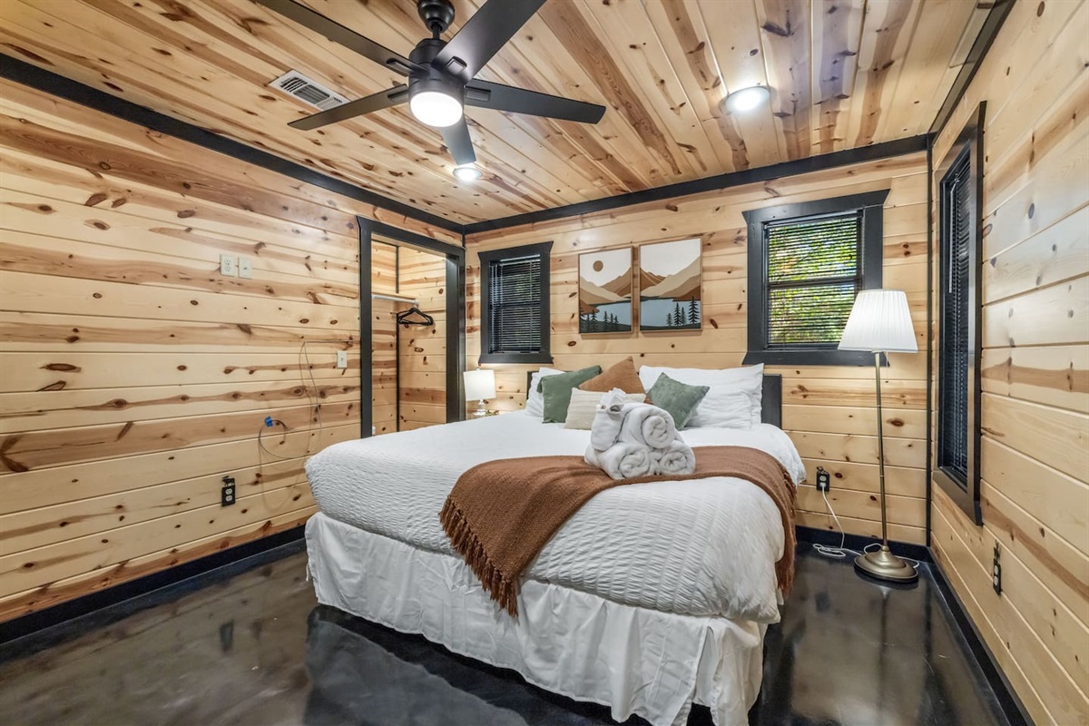 KING BEDROOM 2: Downstairs (bathroom in the hallway)